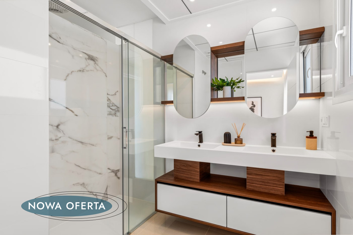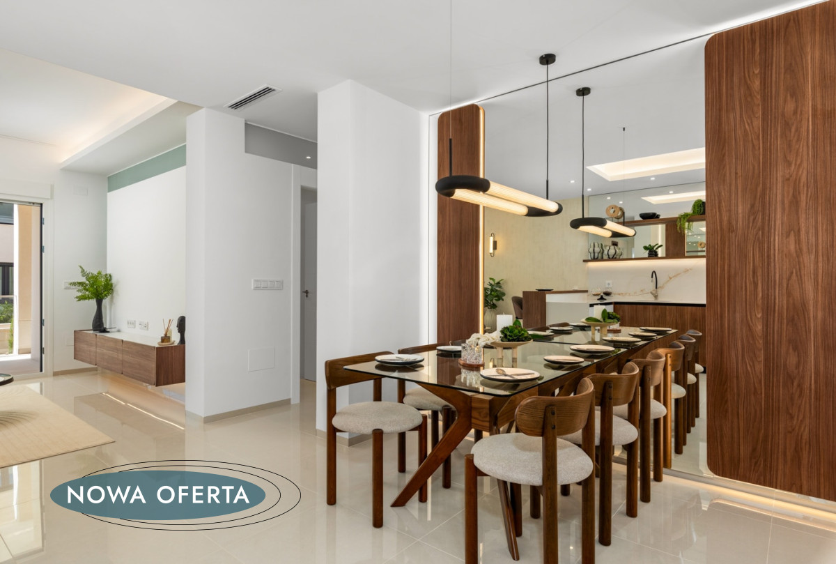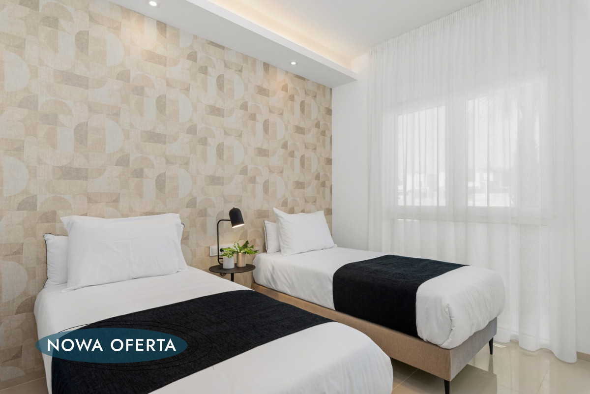 Wille bliźniacze mają 3 sypialnie i 3 łazienki, otwartą kuchnię, duży salon z jadalnią, solarium i prywatny ogród.