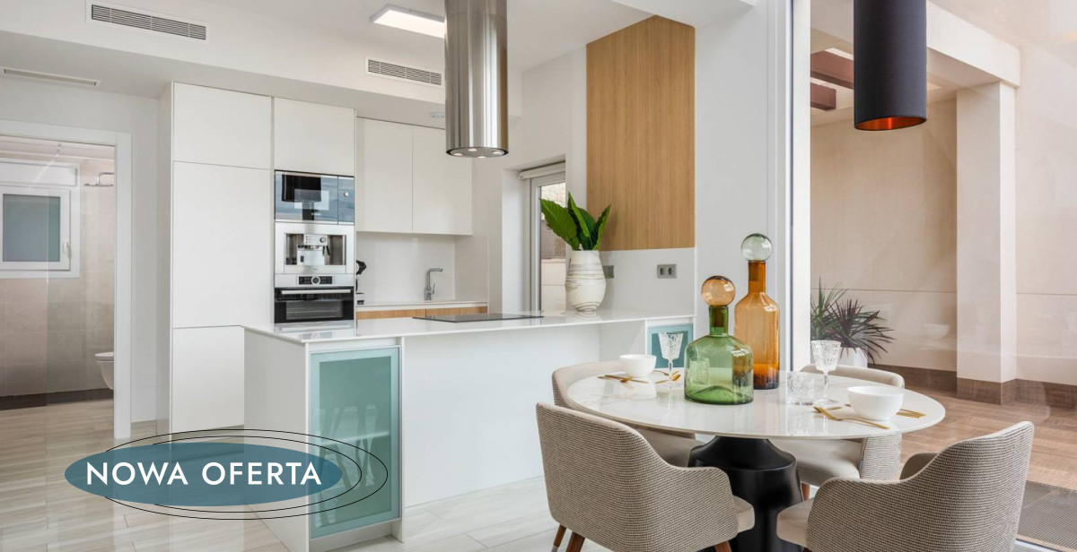Ich luksusowe i bardzo jasne wnętrza nie ustępują im w niczym. To idealne miejsce na relaks i inspirację. W nowoczesnej, otwartej kuchni, wyposażonej w bar śniadaniowy, poczujesz się komfortowo gotując, a dzięki dużym oknom będziesz mieć widok na basen. Z przyjemnością spotkasz się również z rodziną w dużej jadalni, aby nie zatracić tradycji filmów, popcornu i śmiechu.