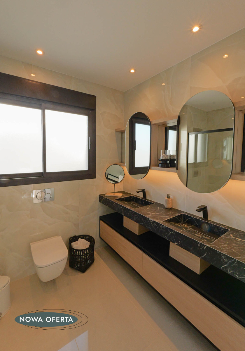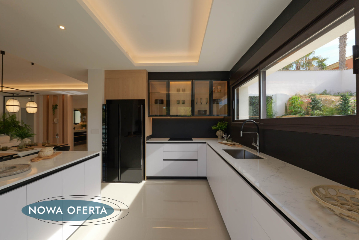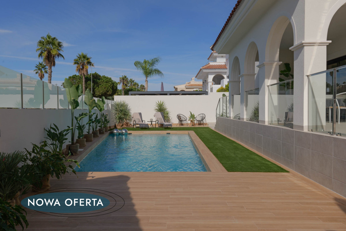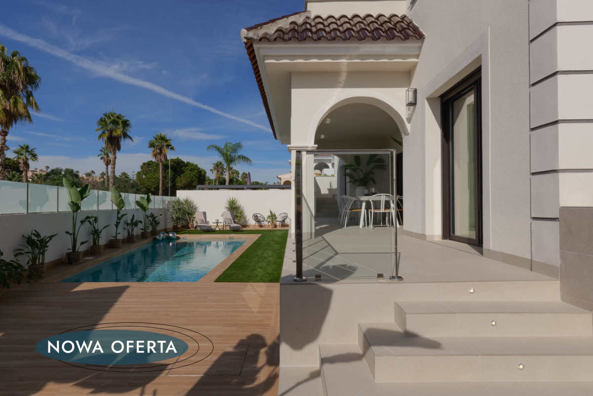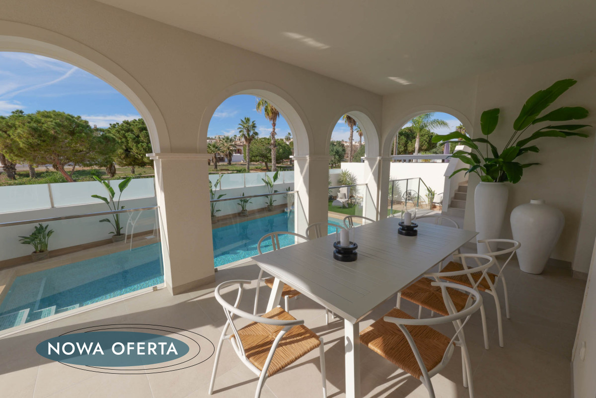 Urocza niezależna willa o wyjątkowym wystroju, charakteryzująca się połączeniem stylu śródziemnomorskiego z nowoczesnymi akcentami architektonicznymi.